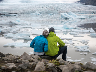 Ducks swimming among iceburgs in the lagoon near Jokulsarlon Glacier