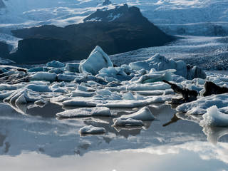 Detail of iceburgs washed up on the beach near Jokulsarlon glacier